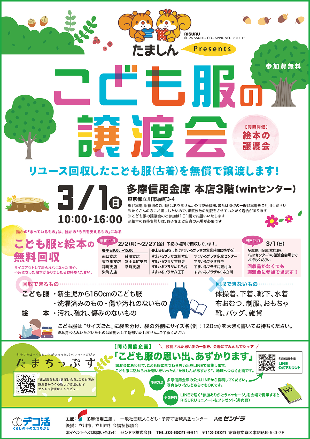 | (ご注意)こども服の回収のみ実施です 譲渡はございません 2月28日 東京都文京区 文京区にふみこむフェスタ2025 初開催 文京区民センター3A,3B,3D会議室・文京区本郷4-15-14 (施設詳細はこちら) ※一般社団法人こども・子育て循環共創センター にてブース出展いたします。 ![]() |
