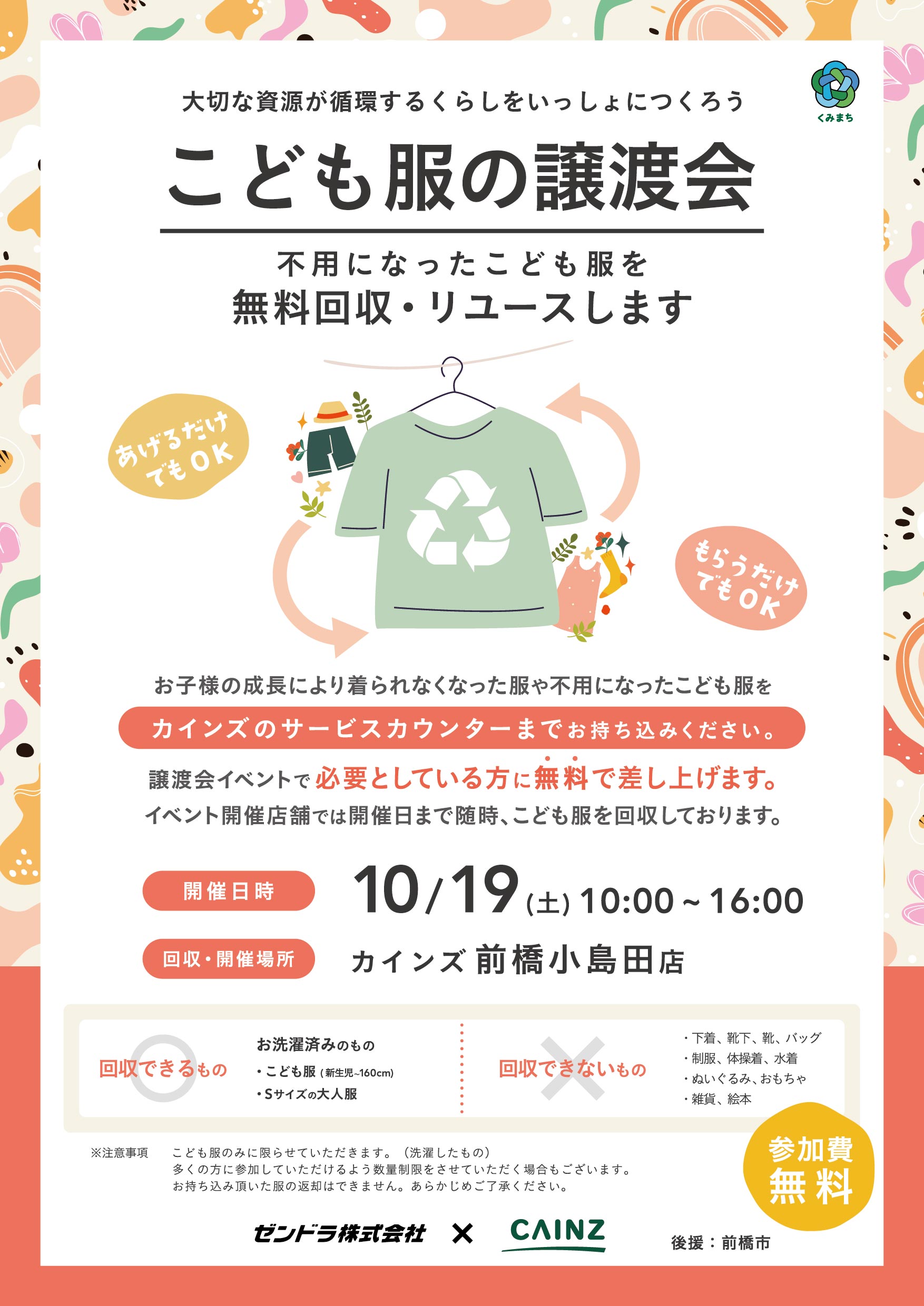 各地域・地方自治体において、デコ活(脱炭素につながる新しい豊かな暮らしを創る国民運動)推進の具体的な取り組みとして、また、住民の環境意識の醸成・サステナブルファッションの啓発・浸透につながるリユース推進の一つとして、私たちが取り組む『こども服の譲渡会』を開催してみませんか?